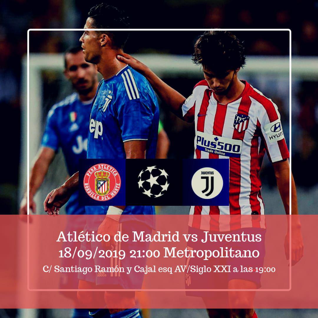 ATLÉTICO DE MADRID VS JUVENTUS Miércoles 18 septiembre 2019 21:00 La salida será ÚNICA en la Calle Santiago Ramón y Cajal esquina Avenida Siglo XXI a las 19:00 Calle Santiago Ramón y Cajal esquina Avenida Siglo XXI a las 19:00 Si no eres de la peña o no tienes abono del bus y quieres solicitar […]